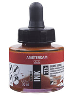 Amsterdam acrylic ink combines the best properties of ink with the benefits of acrylic paint - the ultra-fluid, vibrant colours don’ t fade and dry quickly with a permanent finish. Amsterdam acrylic ink in Burnt...