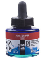 Amsterdam acrylic ink combines the best properties of ink with the benefits of acrylic paint - the ultra-fluid, vibrant colours don’ t fade and dry quickly with a permanent finish. Amsterdam acrylic ink in Phthalo...
