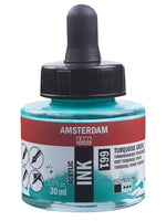 Amsterdam acrylic ink combines the best properties of ink with the benefits of acrylic paint - the ultra-fluid, vibrant colours don’ t fade and dry quickly with a permanent finish. Amsterdam acrylic ink in Turquoise...