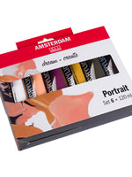 Contents: 6 x 120 ml tubes (105 Titanium White - 224 Naples Yellow Red - 344 Caput Mortuum Violet - 227 Yellow Ochre - 408 Raw Umber - 409 Burnt Umber).