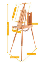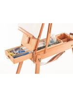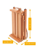Product description: · SMALL · Constructed of oiled, stain-resistant beech wood · Canvas holder can be adjusted to any angle between vertical and horizontal · Folding palette · 4 compartment tin-lined sliding accessory drawer ·...