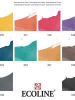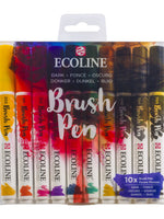 This set contains 10 Ecoline Brush pens in vivid dark shades. The Brush Pen is characterized by its flexible tip and extensive range of brilliant colours thanks to its pure, dye-based formula. The transparent colours...