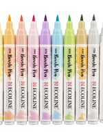 This set contains 10 Ecoline Brush pens in soft pastel shades. The Brush Pen is characterized by its flexible tip and extensive range of brilliant colours thanks to its pure, dye-based formula. The transparent colours...