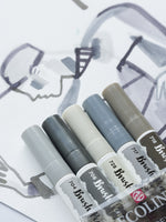 Contents: 5 Brush Pens (704 Grey - 706 Deep Grey - 728 Warm Grey Light - 717 Cold Grey - 718 Warm Grey).