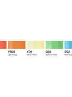 This Rainbow Doodle set includes 5 markers: B02, G02, Y00, YR02 and R22. In addition, there are 2 Multiliners pens: 0.3 Black and 0.3 Cobalt. This set is perfect for creating light-tone illustrations and is also a great set for anyone getting started colouring with Copic! Copic Ciao, is the ideal introductory graphic marker. Its double ended design features a flexible Super Brush nib and a Medium Broad nib for expressive strokes, building tone, blending colours, shading, finer details and lines, and large streak free coverage. Refillable, replaceable nibs, ultra blendable and made with the highest grade of expertly formulated alcohol and dye-based inks.