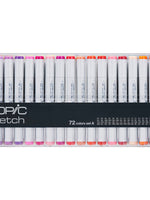This 72A colour set includes a broad range of bright colours, cool and warm greys, as well as 100 & 110 black. All of these colours blend well together. This is a great way to get started with Copic. A wide selection of basic colours is commonly used in design and illustration. The set includes popular vivid colours, blending shades and essential Grey's. For portrait and comic illustration we recommend adding a few colours from the Portrait Set. The entire range of 358 Copic Sketch colours will be complete if combining Sketch 72 colour Sets A, B, C, D and E (note: E00 & 100 would be duplicated). Start or expand your collection with readily curated sets with colour combinations that are suitable for blending to achieve professional results. The acrylic case keeps the markers well organised and displayed for easy navigation to help plan the perfect blends and colour schemes. Sketch markers are loved because of the flexible super brush and the wide range of 358 colours. They feature Medium Broad and flexible Super Brush nib combination. Great for expressive strokes, building up a tone, blending colours, shading, finer details and lines, and streak-free free coverage. Ideal for illustration, design and paper craft. They are refillable, replaceable nibs and compatible with the Copic airbrush system.