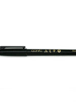The Gasenfude Brush Pen delivers all the flexibility of using an ink brush but in pen-form. This flexible brush nib creates expressive line variations and is made of water-based pigment (which means that it's Copic-proof). That means that when the ink dries on your paper, it won't bleed into any of your Copic markers (and you can color on top of the Gasenfude ink with your Copic markers and no smearing will happen).