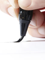 The Gasenfude Brush Pen delivers all the flexibility of using an ink brush but in pen-form. This flexible brush nib creates expressive line variations and is made of water-based pigment (which means that it's Copic-proof)....