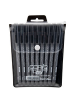 Copic Multiliners are the finest quality waterproof pens, available in a variety of sizes and styles. · Pigment-based ink is waterproof when dry Alcohol resistant when dry, won’ t bleed or smear when used with Copic Markers · Acid free · Copic Multiliners are ideal for sketching, drawing, manga and writing · Multiliners are available in Black, Brown, Cobalt, Cool Grey, Lavender, Olive, Pink, Sepia, Warm Grey and Wine Set contains: · 1 x Black 0.03 Multiliner · 1 x Black 0.05 Multiliner · 1 x Black 0.1 Multiliner · 1 x Black 0.3 Multiliner · 1 x Black 0.5 Multiliner · 1 x Black 0.8 Multiliner · 1 x Black 1.0 Multiliner · 1 x Black Brush Small (BS) · 1 x Black Brush Medium (BM)