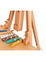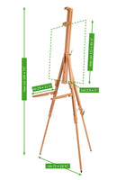 Product description: · BASIC WITH ARMS · Constructed of oiled, stain-resistant beech wood · Pivoting canvas holder can be adjusted to any angle between vertical and horizontal · Fitted with 2 folding shelf brackets that support a pastel box while 2 adjustable wood blocks hold it in place Product details: · Weight: 1.9 Kg - 4 lbs · Maximum loading capacity: 4 Kg - 8¾ lbs · Indoor easel · Outdoor easel · Oil-Acrylic easel · Pastel easel · Watercolour easel · Display easel · Made in Italy