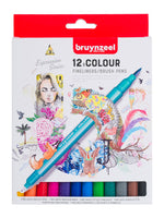 Basic set of 12 fineliners / brush pens. Perfect for urban sketching, hand lettering, bullet journalling, brush lettering and drawing. Dual point - Brush tip for thick & thinner lines & 0.4 mm durable fibre...