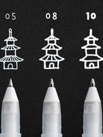 Writing, drawing and decorating is now even more fun. The opaque white ink stands out on dark and coloured papers and makes highlights pop in illustrations and comics. Use it for handlettering accents, party crafts, layered on top of colours for mixed media and bright highlights in tonal drawings. Elevate your art to another level using the range of thick and thin lines, small detail and unique bold marks.