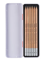 6 high quality graphite pencils with a strong, thick core ranging from 2.2 to 3.6 mm. Excellent graphite transfer and perfect balance of the pencil hardness.
