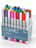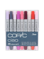 This 36E Ciao set includes both light and dark tones as well as any of the other earth-tones that were not included in the other 36 piece sets. This 36E set is a great way to complete your Ciao collection! This set includes a well-balanced selection of neutral colours that are ideal for adding a sense of depth to your artwork, expressing transparency, or contrasting light and dark. The entire range of 180 Copic Ciao colours can be completed by combining the 36 colour sets A, B, C, D and E.
