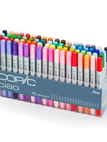This 72A Ciao set includes a combination of colours from the 36A & 36B sets. These colours are recommended for beginners and experts alike. It includes a wide selection of basic colours commonly used in design and illustration. This set is a great way to start your Copic Ciao collection! The set covers vivid tones, blending shades and essential greys. It also includes a colourless blender (0). This set is great for serious artists looking for the high-quality features found in Sketch markers but sold at a more attractive price-point.