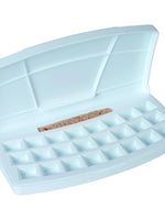 This plastic travel pocketbox comes empty, but with room to hold 24 half pans of van Gogh watercolour paints (sold separately). Select your own pans to create a custom set for your own palette preference!