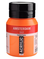 Amsterdam Acrylic offers you the broadest range of remarkably vibrant acrylic colours. This versatile paint is easy to work with and offers a smooth application. Available in 120ml tubes and 500ml jars. Amsterdam Acrylic paint in Azo Orange (276) is a semi-opaque colour with a very good lightfastness (++). · Non-toxic · Made with high-quality, lightfast pigments · Odourless, water-based formula that becomes waterproof and permanent when dry · An exceptionally durable paint film (the binding agent consists of 100% acrylic resin) · Short drying time: thin films of paint dry within half an hour · Use the paint straight from the tube or thinned with a little bit of water or one of our acrylic mediums · Adheres to virtually any slightly porous surface, including canvas, paper, cardboard, wood, stone and cement · It can be used with Amsterdam Acrylic Ink for various media results · The specialities (metallic, pearl and reflex finishes) can be combined perfectly with the other 73 colours of the Amsterdam series · Proudly crafted in the Netherlands