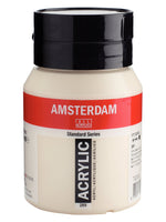 Amsterdam Acrylic offers you the broadest range of remarkably vibrant acrylic colours. This versatile paint is easy to work with and offers a smooth application. Available in 120ml tubes and 500ml jars. Amsterdam Acrylic paint in Titanium Buff Light (289) is an opaque colour with an excellent lightfastness (+++). · Non-toxic · Made with high-quality, lightfast pigments · Odourless, water-based formula that becomes waterproof and permanent when dry · An exceptionally durable paint film (the binding agent consists of 100% acrylic resin) · Short drying time: thin films of paint dry within half an hour · Use the paint straight from the tube or thinned with a little bit of water or one of our acrylic mediums · Adheres to virtually any slightly porous surface, including canvas, paper, cardboard, wood, stone and cement · It can be used with Amsterdam Acrylic Ink for various media results · The specialities (metallic, pearl and reflex finishes) can be combined perfectly with the other 73 colours of the Amsterdam series · Proudly crafted in the Netherlands