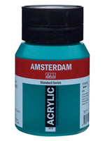 Amsterdam Acrylic offers you the broadest range of remarkably vibrant acrylic colours. This versatile paint is easy to work with and offers a smooth application. Available in 120ml tubes and 500ml jars. Amsterdam Acrylic paint in Phthalo Green (675) is a transparent colour with an excellent lightfastness (+++). · Non-toxic · Made with high-quality, lightfast pigments · Odourless, water-based formula that becomes waterproof and permanent when dry · An exceptionally durable paint film (the binding agent consists of 100% acrylic resin) · Short drying time: thin films of paint dry within half an hour · Use the paint straight from the tube or thinned with a little bit of water or one of our acrylic mediums · Adheres to virtually any slightly porous surface, including canvas, paper, cardboard, wood, stone and cement · It can be used with Amsterdam Acrylic Ink for various media results · The specialities (metallic, pearl and reflex finishes) can be combined perfectly with the other 73 colours of the Amsterdam series · Proudly crafted in the Netherlands
