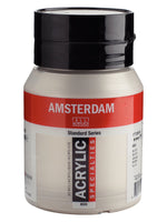 Amsterdam Acrylic offers you the broadest range of remarkably vibrant acrylic colours. This versatile paint is easy to work with and offers a smooth application. Available in 120ml tubes and 500ml jars. Amsterdam Acrylic paint in Silver (800) is a semi-opaque colour with an excellent lightfastness (+++). · Non-toxic · Made with high-quality, lightfast pigments · Odourless, water-based formula that becomes waterproof and permanent when dry · An exceptionally durable paint film (the binding agent consists of 100% acrylic resin) · Short drying time: thin films of paint dry within half an hour · Use the paint straight from the tube or thinned with a little bit of water or one of our acrylic mediums · Adheres to virtually any slightly porous surface, including canvas, paper, cardboard, wood, stone and cement · It can be used with Amsterdam Acrylic Ink for various media results · The specialities (metallic, pearl and reflex finishes) can be combined perfectly with the other 73 colours of the Amsterdam series · Proudly crafted in the Netherlands