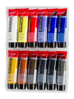 Contents: 12 x 20 ml (105 Titanium White - 276 Azo Orange - 315 Pyrrole Red - 519 Ultramarine Violet Light - 504 Ultramarine - 570 Phthalo Blue - 227 Yellow Ochre - 411 Burnt Sienna - 403 Vandyke Brown - 708 Payne’ s Grey - 735 Oxide Black - 840 Graphite).