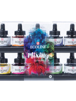 This set contains 10 bottles of Ecoline liquid watercolour ink in various bright colours. The round Ecoline bottles are stable and have a wide opening, so you can work straight out of the bottles using a brush or pen. Additionally, the bottles are fitted with a handy pipette that allow you to easily dose Ecoline into mixing trays or straight onto your artwork. The transparent colours offer the best results when used on white or very light-coloured paper.