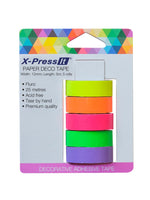 X-Press It Fluoro Deco Tape includes 5 assorted flourecent colours of 12mm tape. They're ideal for adding a bright accent to all your projects. This tape is also great for decorating, repurposing and craft applications.