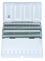 · Premium metal case · Designed to hold 48 Rembrandt watercolour paint half pans · Durable enough for easy transport · The metal covers hinge open and provide mixing wells · Half pans of water...
