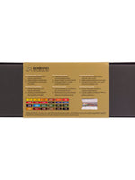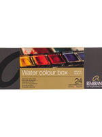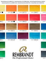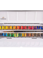 Includes 12 watercolour paint pans in the following colours: Cadmium Yellow Lemon (207), Cadmium Orange (211), Yellow Ochre (227), Gamboge (238), Azo Yellow Light Cadmium Free (246), Azo Yellow Deep Cadmium Free (248), Cadmium Red (305), Cadmium Red Deep (306), Permanent Madder (336), Quinacridone Rose (366), Burnt Umber (409), Greenish Umber (410), Burnt Sienna (411), Sepia (416), Ultramarine Deep (506), Prussian Blue (508), Cobalt Blue (511), Mauve (532), Cerulean Blue (534), Viridian (616), Sap Green (623), Hooker Green Deep (645), Permanent Green (662), Payne's Grey (708). All colours in this general colour selection set have the highest lightfastness rating of +++ (100+ years under museum conditions). This set also includes a brush.