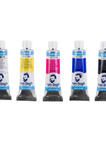 The primary mixing set contains: 5 x 10ml tubes: Opaque White (106), Permanent Lemon Yellow (254 Primary), Quinacridone Rose (366 Primary), Phthalo Blue (570 Primary), Ivory Black (701) + colour mixing brochure.