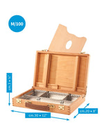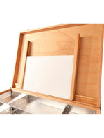 Product description: · SKETCH BOX · Constructed of oiled, stain resistant beech wood · Tin lined drawer with adjustable metal dividers to customize the compartments for brushes, paints and other supplies · Palette · Sliding...