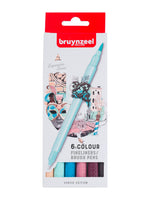 6 fineliners / brush pens in a Venice inspired colour range. Perfect for urban sketching, hand lettering, bullet journalling, brush lettering and drawing. Dual point - Brush tip for thick & thinner lines & 0.4 mm durable fibre nib for details. Water-based ink.