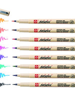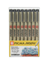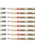 These Sakura Pigma Micron Brush Pens have ink that is fast-drying, pigment-based, fade-resistant, and waterproof once dry, making them permanent. The ink is also bleed proof on most papers and will not smear or feather when dry. · Brush nib · This pack contains the following ink colours: black, red, blue, green, orange, brown, rose and purple · Waterproof and fade resistant · Odourless, non-toxic and acid-free · Permanent - archival quality pigmented ink · Ink dries quickly - making it perfect for left-handers · Bleed proof ink won't feather or spread when applied to paper · Ink does not bleed through the thinnest paper · The barrels feature a convenient pocket clip · Flexible brush nib that creates varying strokes and thickness · Ideal for creating technical drawings, artistic illustrations and journaling · Made in Japan